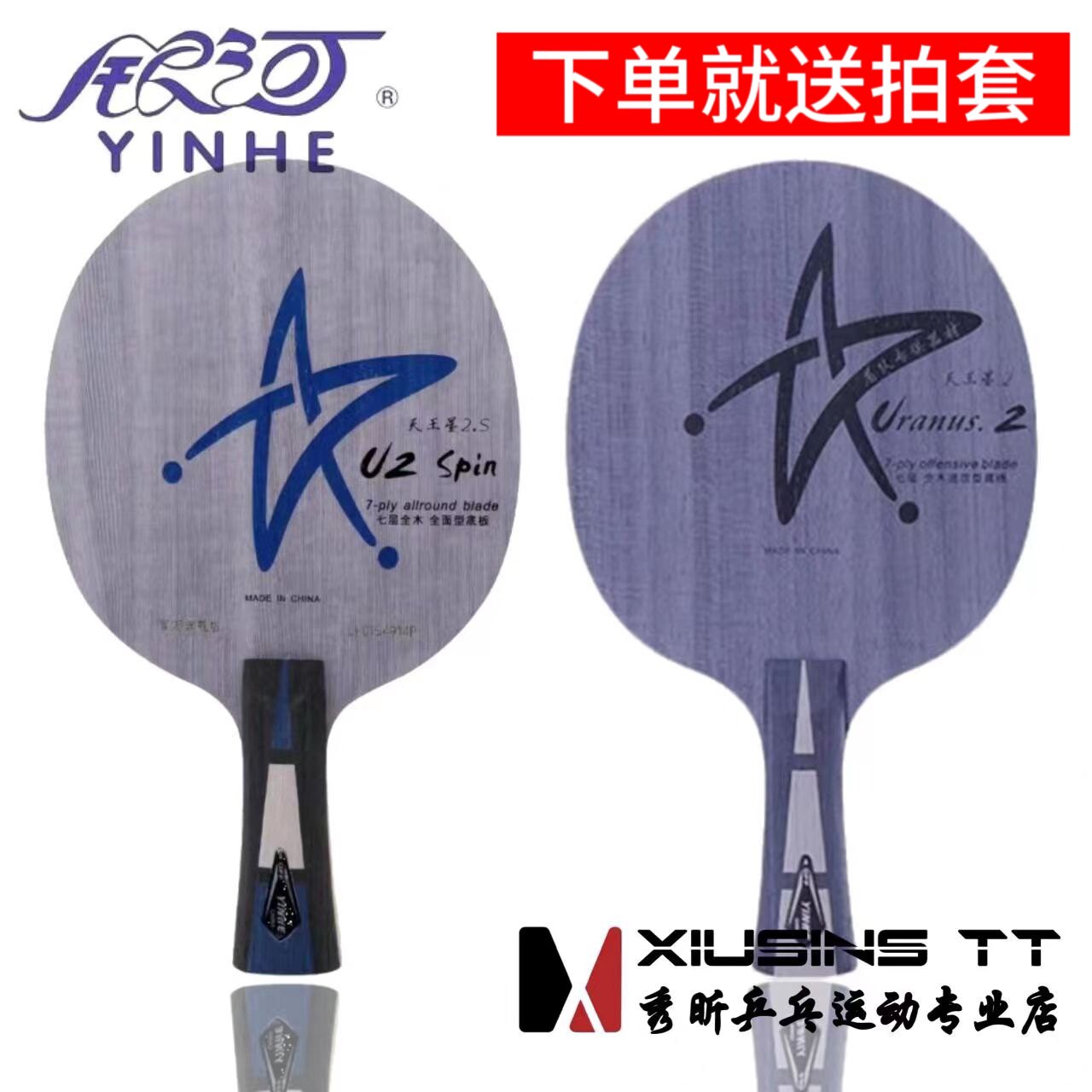 秀昕银河U2S天王星U2升级版U2spin乒乓球拍底板七层纯木快攻弧圈