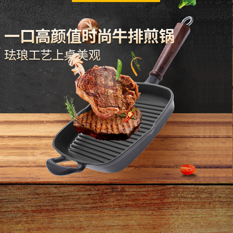 铸味铸铁平底锅家用无涂层多功能不易粘锅珐琅牛排煎锅网红早餐锅