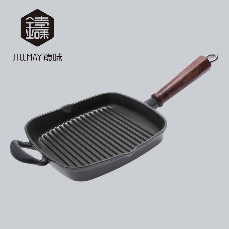 铸味牛排煎锅26CM铸铁平底锅牛排专用条纹锅不易粘锅家用牛扒煎锅