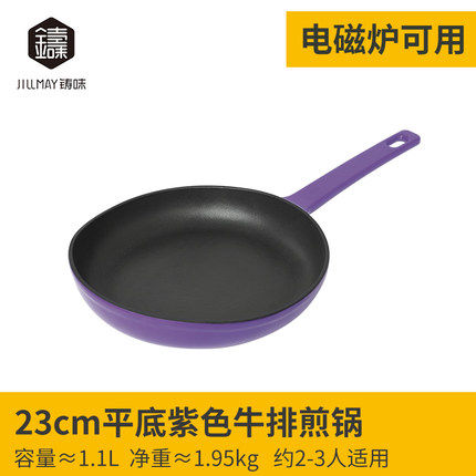 铸味铸铁平底煎锅23cm珐琅粉色家用多功能牛排煎锅烙饼锅不粘早餐