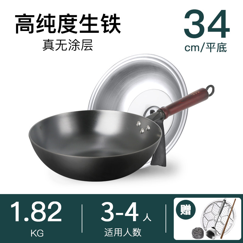 铸味36cm铸铁炒菜老式铁锅家用物理不粘锅家用炒锅燃气电磁炉家用