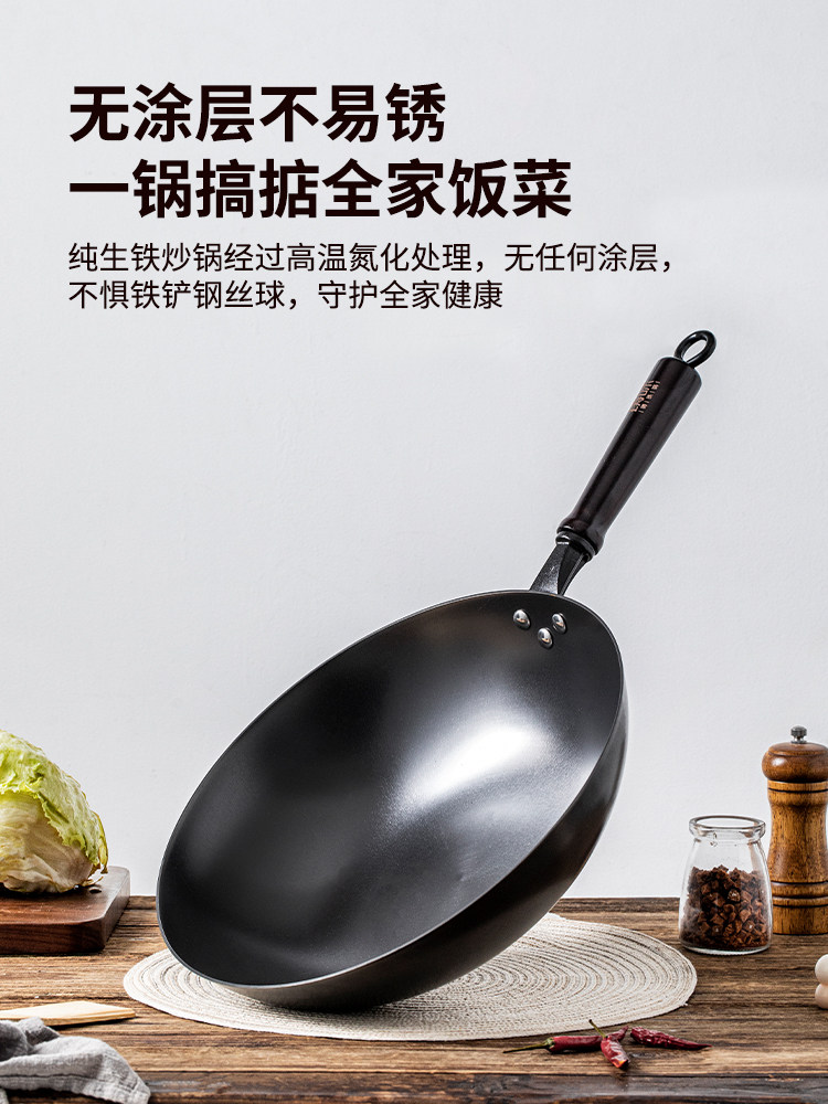 铸味铸铁锅无涂层窒氮少油烟电磁炉专用传统炒锅不粘锅家用炒菜锅