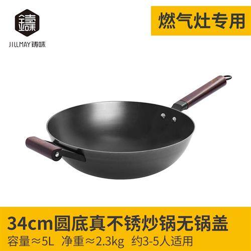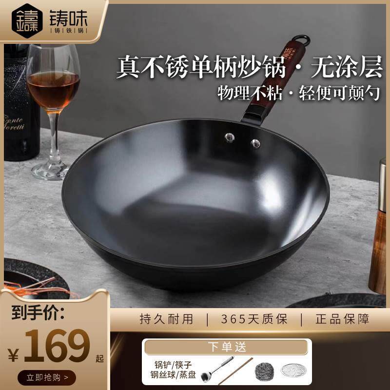 促品铸味铸铁锅真不锈无涂层少油烟电磁炉通用生铁锅燃气炒锅不易