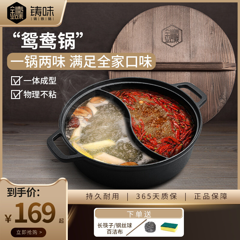 铸味电磁炉专用鸳鸯锅火锅家用一体成型铸铁传统一体锅鸳鸯火锅