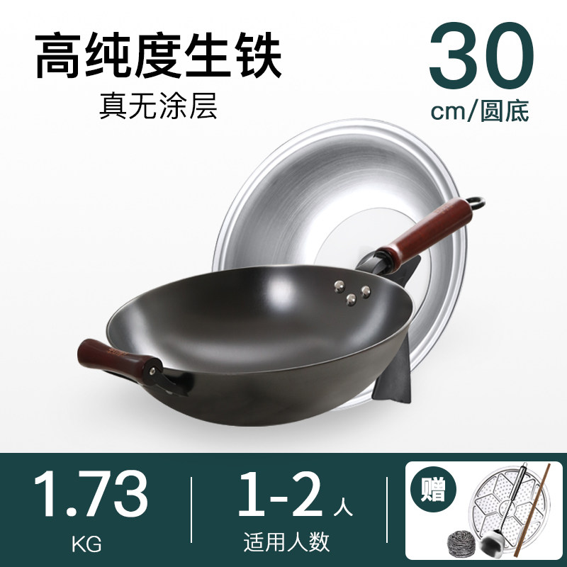 铸味30CM铸铁炒菜锅家用老式平底电磁炉多功能不易粘生铁锅少油烟