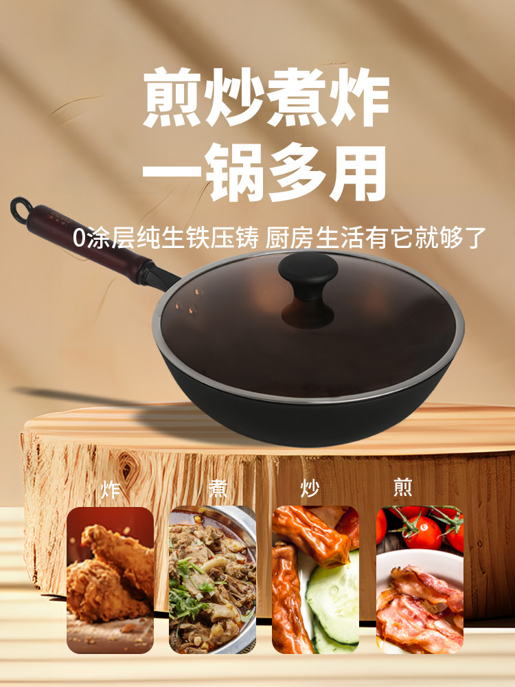 促铸味铸铁锅真不锈无涂层少油烟电磁炉通用生铁锅燃气炒锅不易销