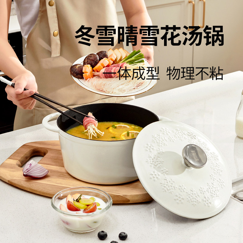 铸味22cm铸铁加厚家用珐琅锅电磁炉煤气灶通用汤锅煮锅白色汤煲