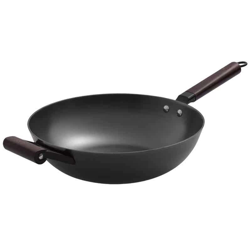 铸味铸铁炒锅无涂层双耳旋风生铁老式家用燃气灶电磁炉平底炒菜锅