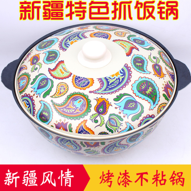【瑕疵处理】新疆特色铸铁搪瓷彩绘饭锅饭店羊肉牛肉鸡肉抓饭锅