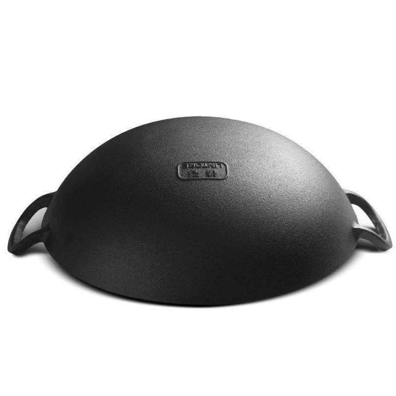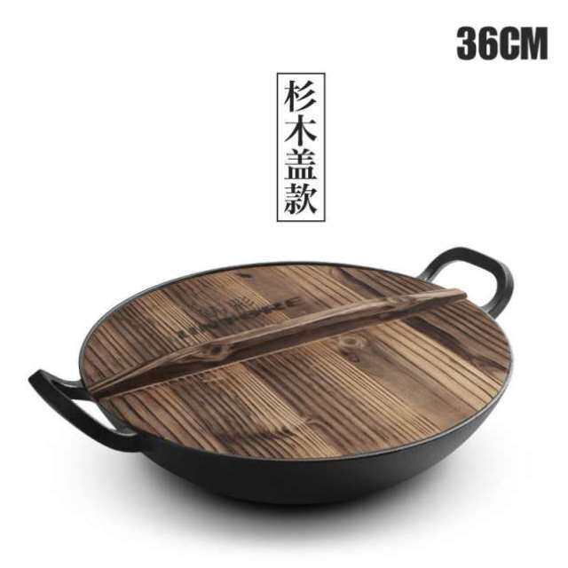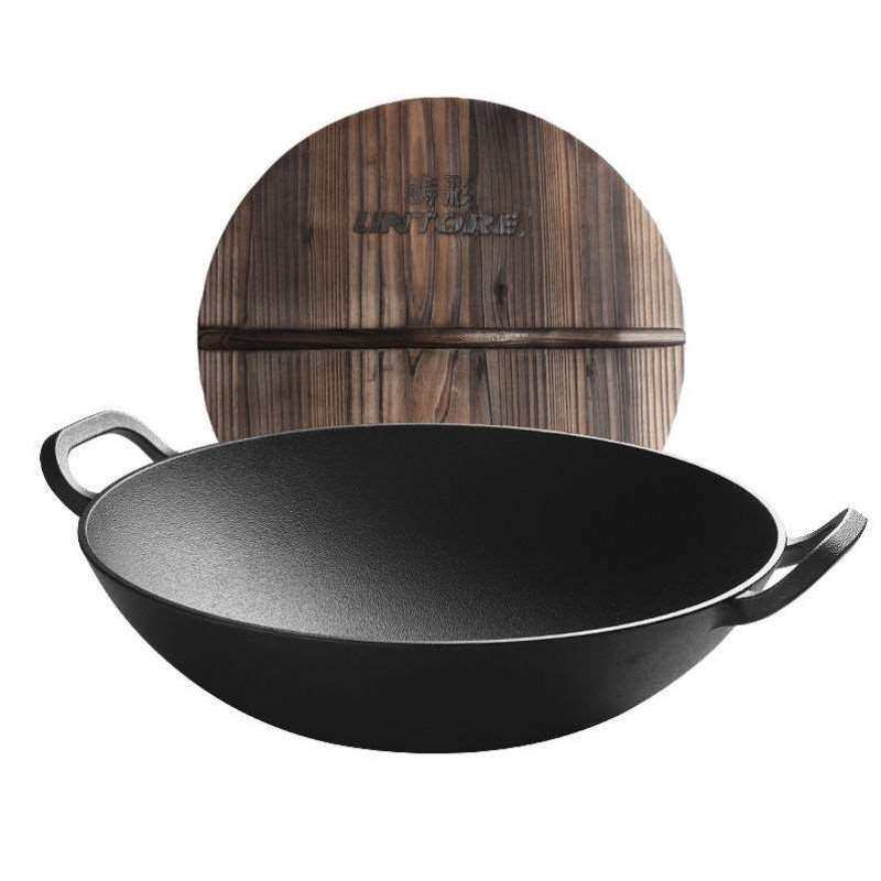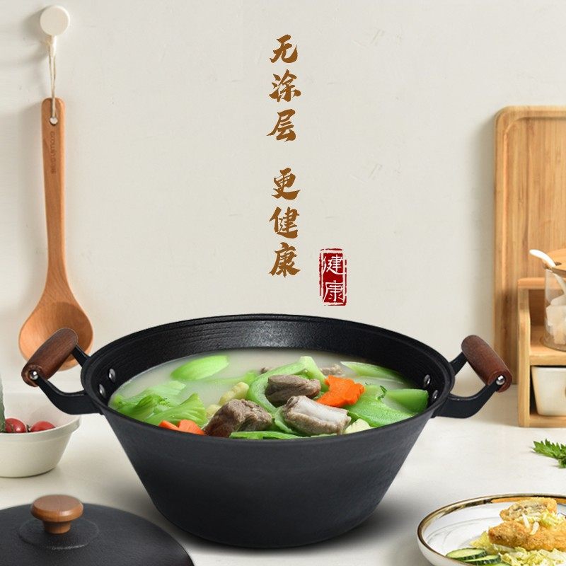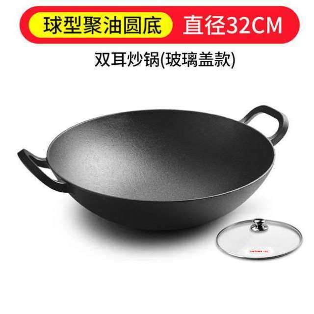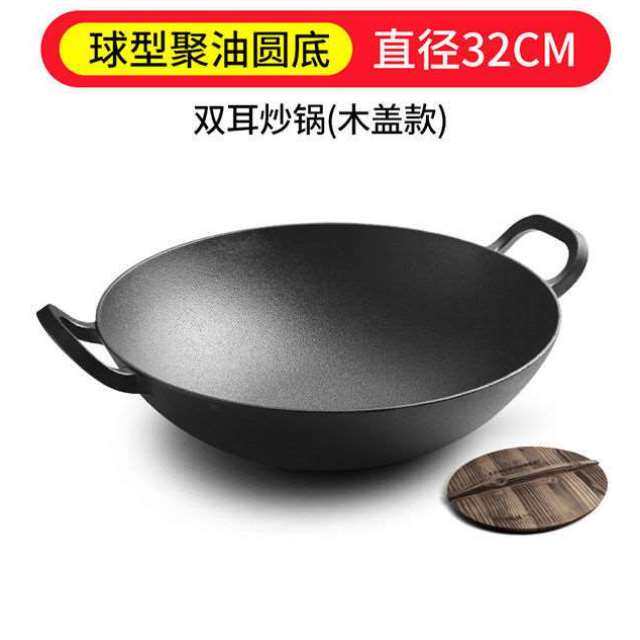 铸彩铸铁炒锅大铁锅双耳老式家用炒菜锅无涂层生铁不粘加深厚炒锅