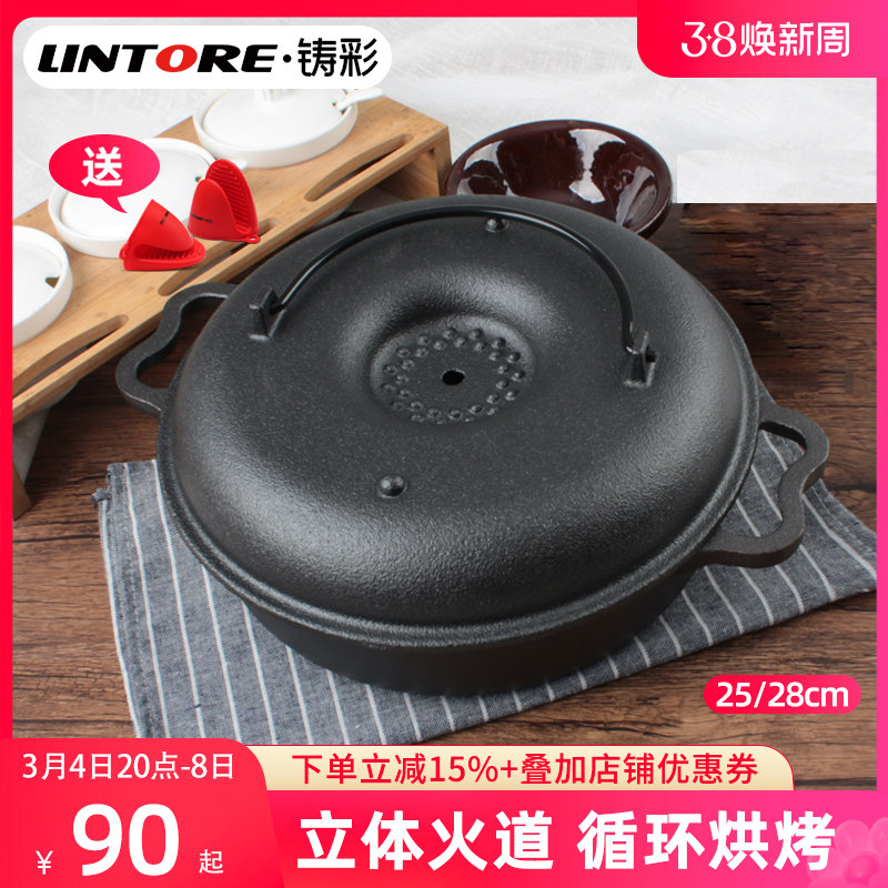 铸彩 铸铁烤红薯锅家用加厚烤地瓜手工生铁锅烧烤锅烤肉锅