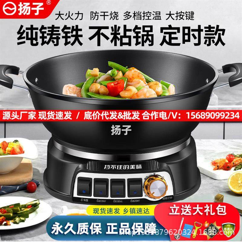 铸铁电炒锅多功能用电热锅电炒菜锅蒸煮一体式电火锅电煮锅