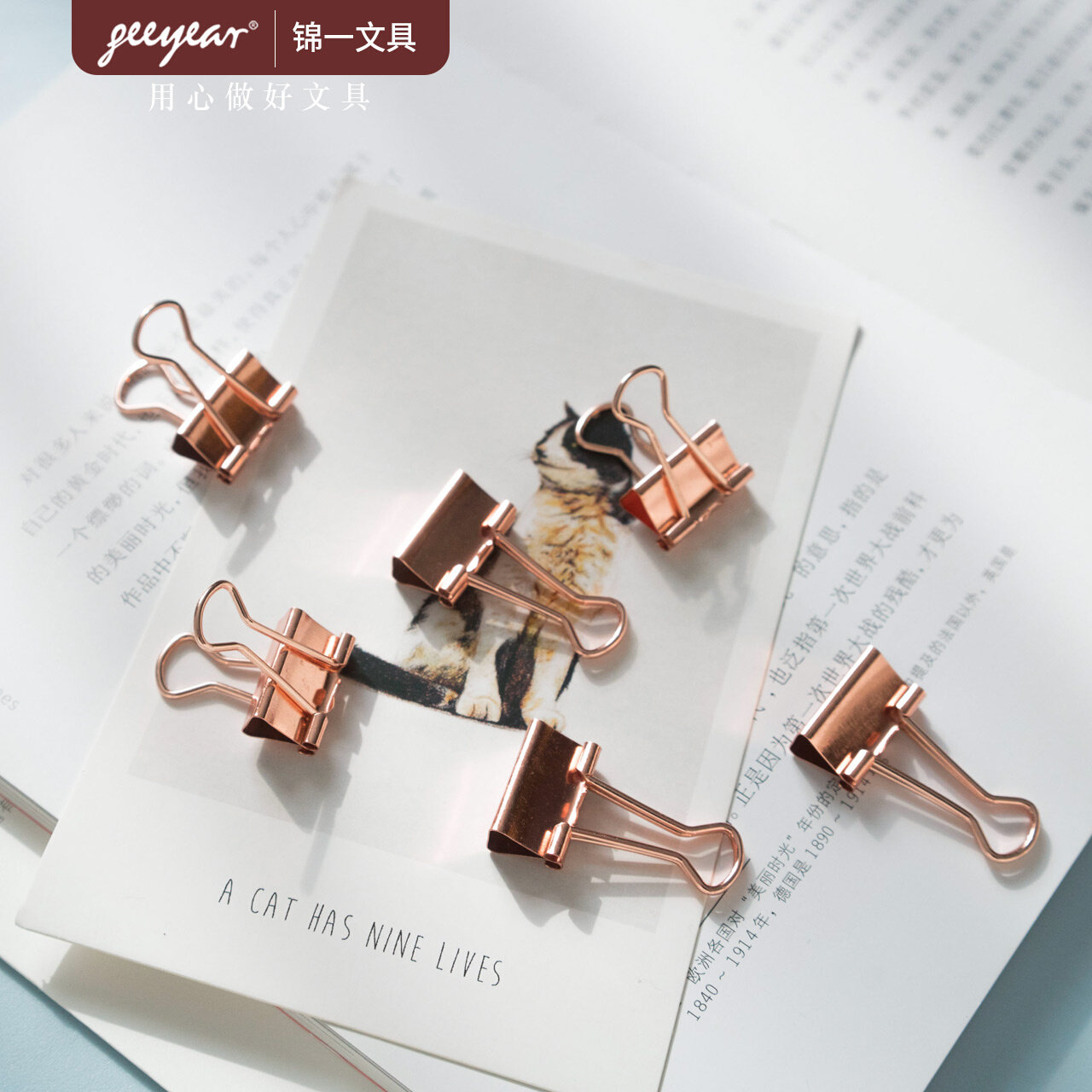 锦一文具 玫瑰金长尾夹 燕尾夹小号金属铁夹子清新可爱创意票夹学