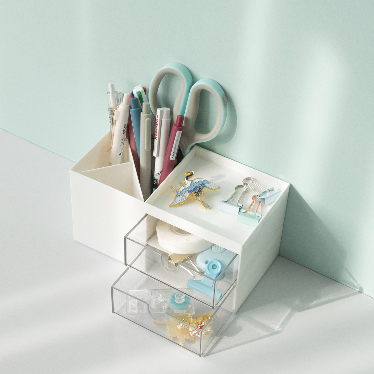 锦一文具 双抽屉学生笔筒个性简约笔架收纳盒笔收纳盒桌面整理摆