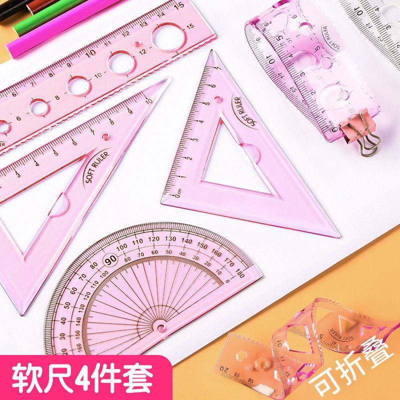 【买一套送一套】软尺子套装4件套学生文具15/20cm不伤手直尺量角