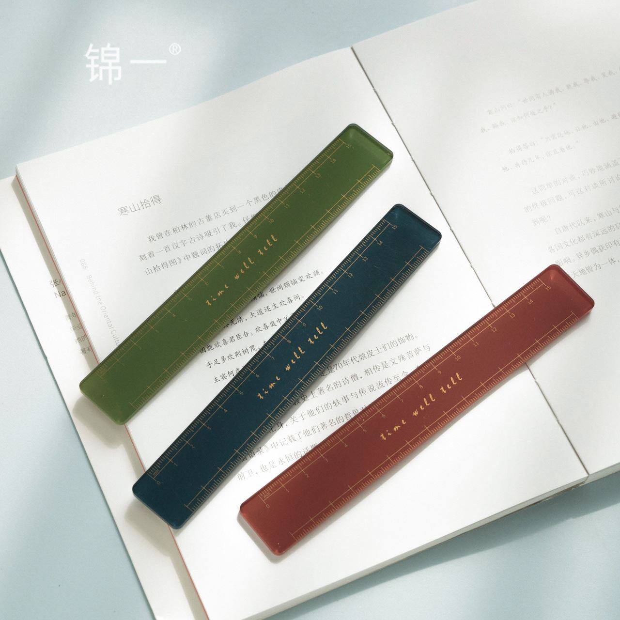锦一文具 复古色直尺 烫金亚克力双色直尺 多功能简约画图大学生