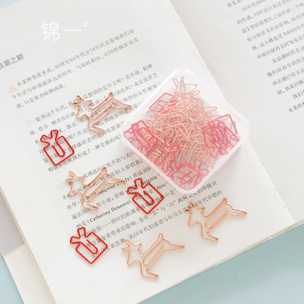 锦一文具 圣诞的歌玫 异形瑰金盒装回形针几何造型多功能韩版书签