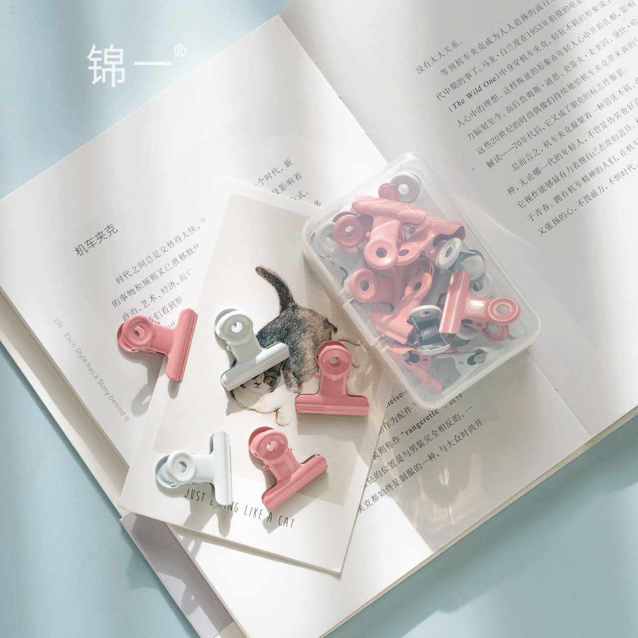 锦一文具 盒装粉色票据夹小夹子 哑光黑长尾夹小清新可爱试卷资料