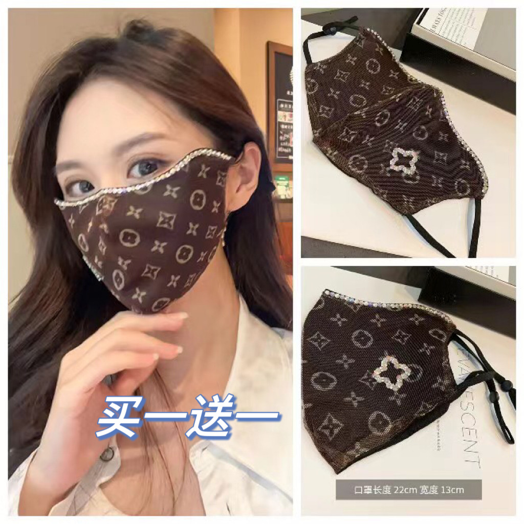 闪亮钻石2023新款洋气蕾丝口罩女高颜值防晒薄款透气洋气时尚口罩