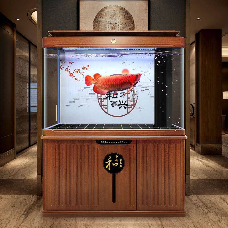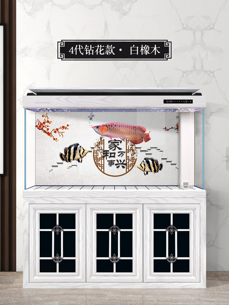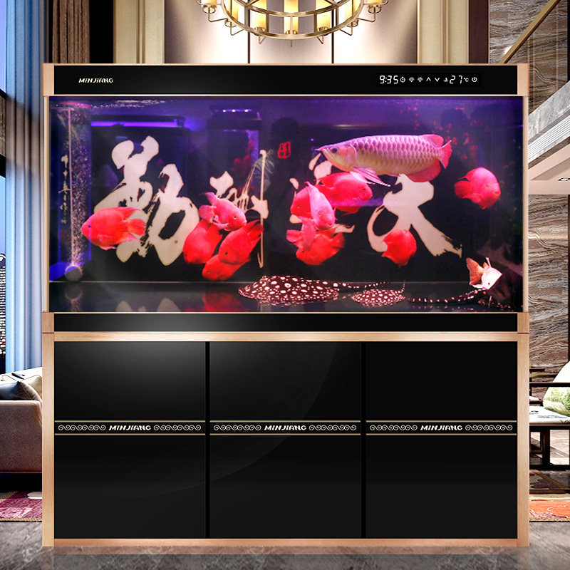 定制闽江鱼缸水族箱木纹客厅家用大中型底滤超白玻璃生态龙鱼缸免