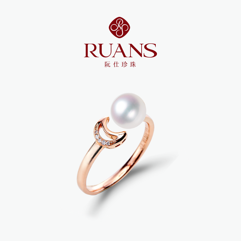 RUANS/阮仕18K金天然淡水珍珠开口戒指 星月钻石正圆强光创意幸运