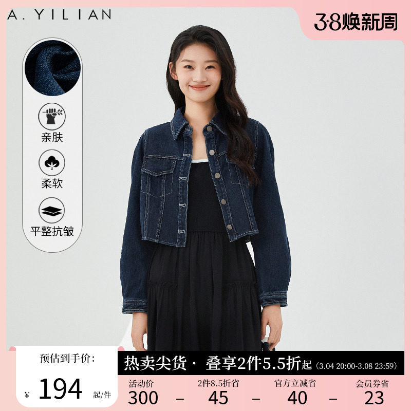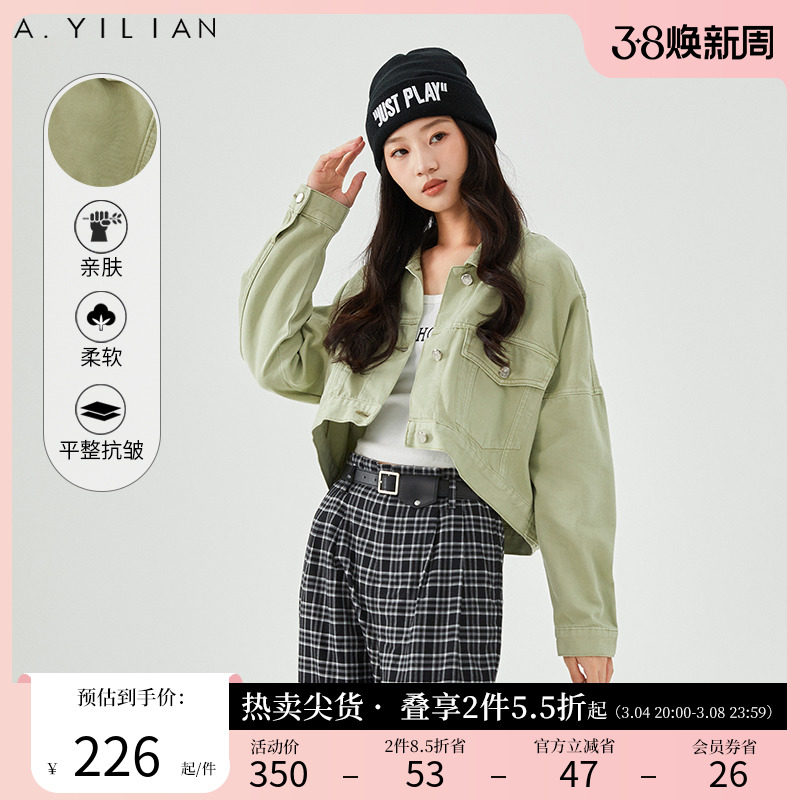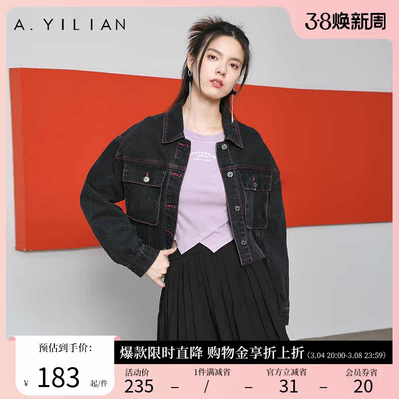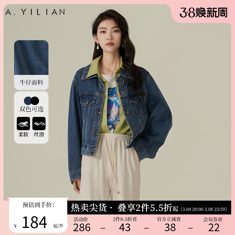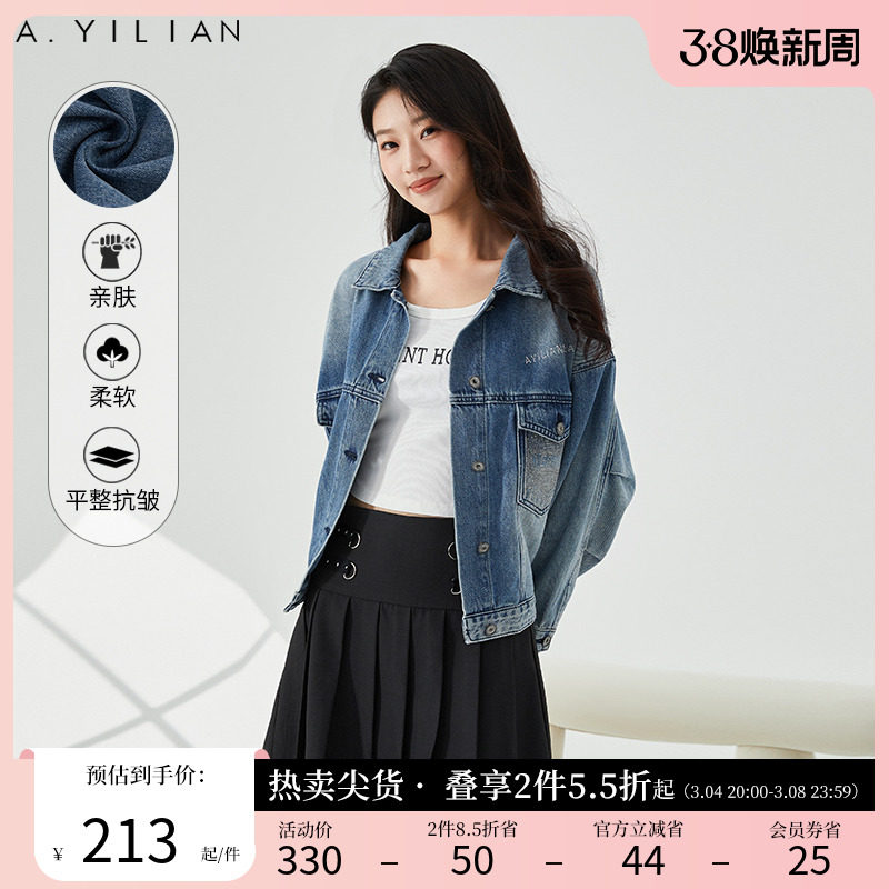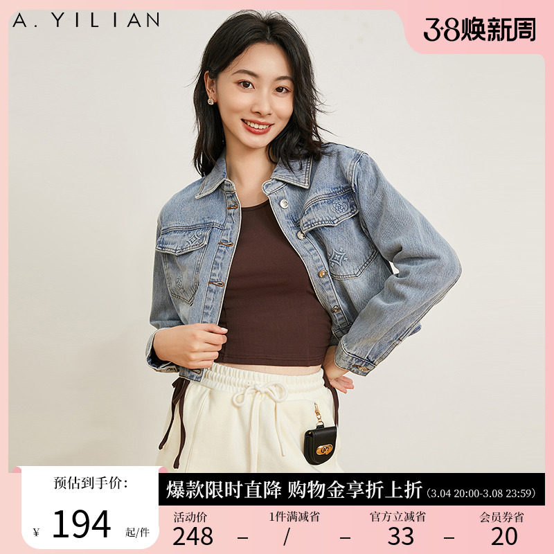 阿依莲新款水洗磨白街头短款做旧潮流牛仔上衣外套女2024春款夹克