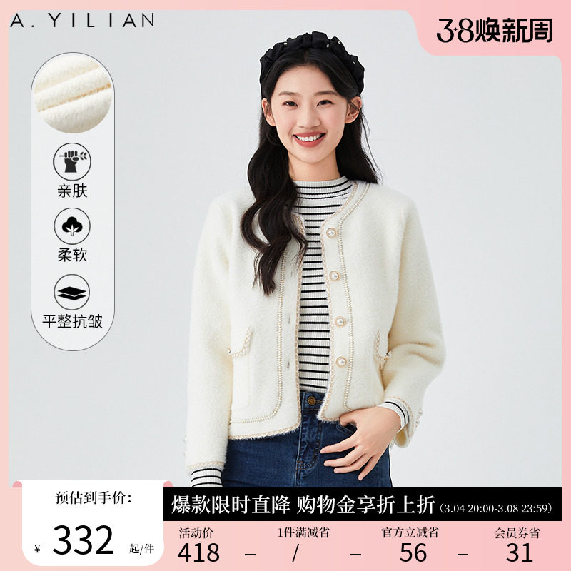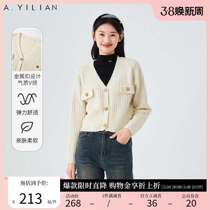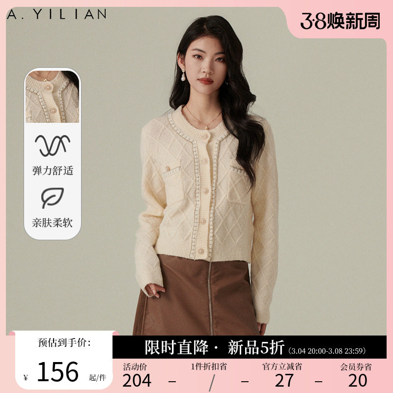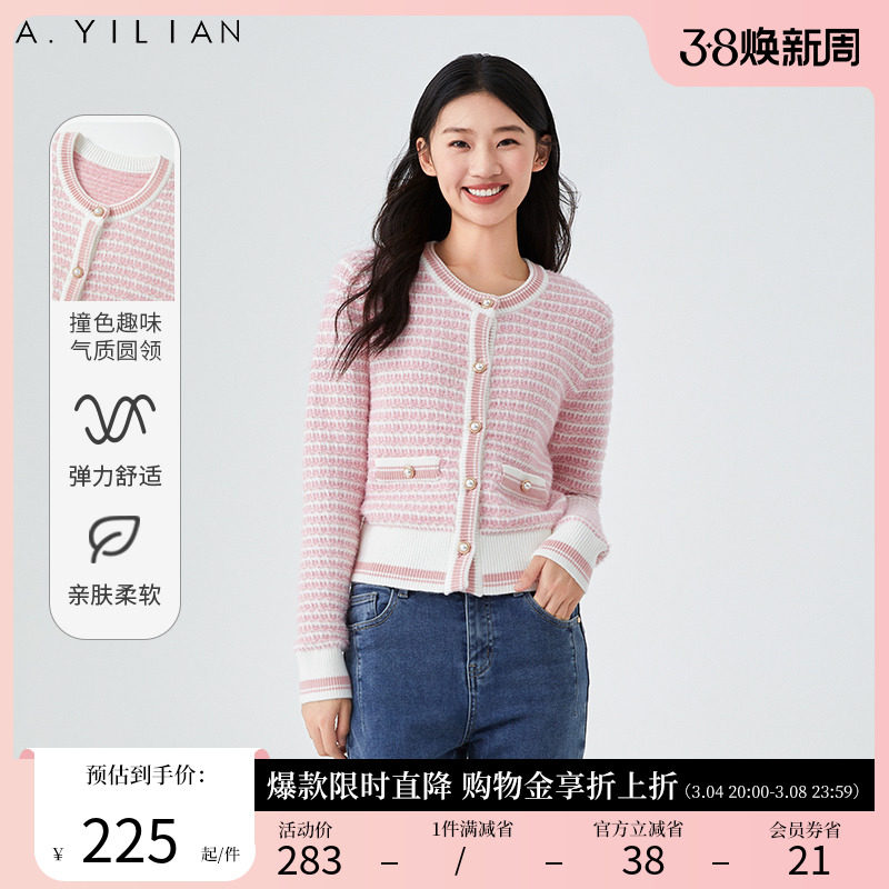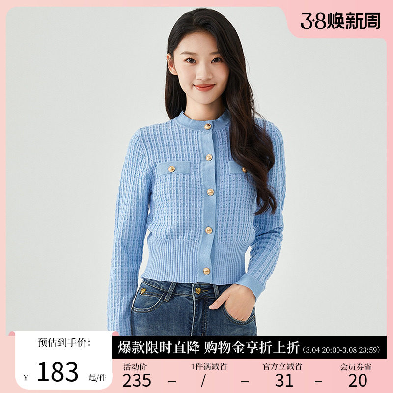 阿依莲2023新款小香风春季针织开衫法式毛织女装减龄外套女毛衣