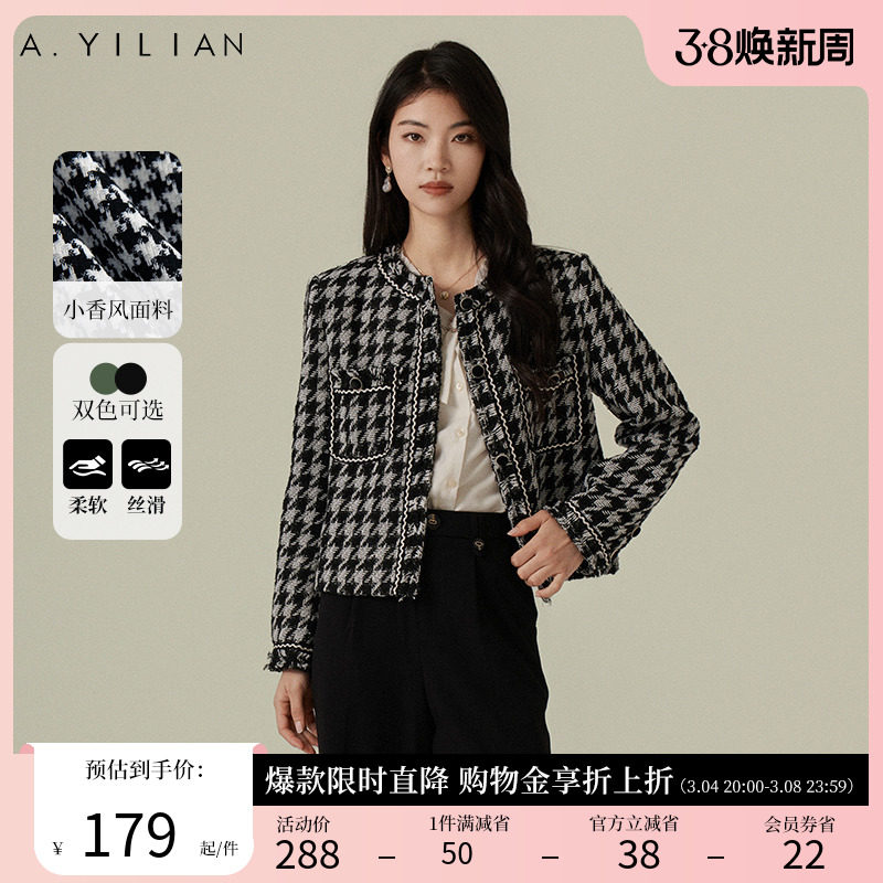 阿依莲千鸟格小香风外套女2024春季新款复古精致格纹短款外套上衣