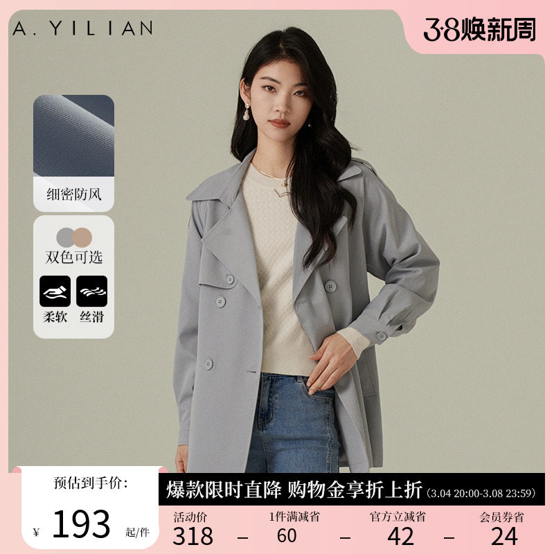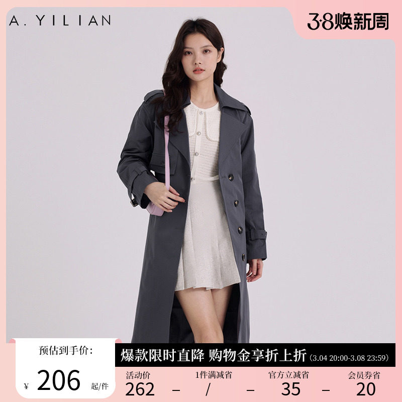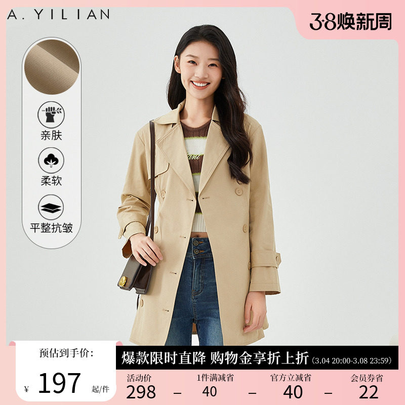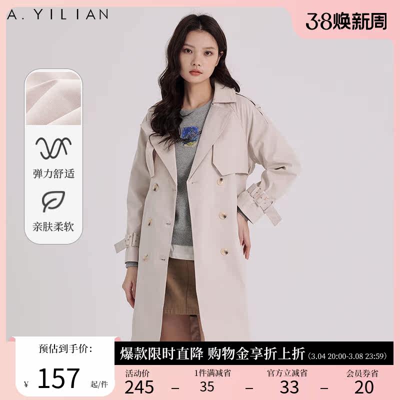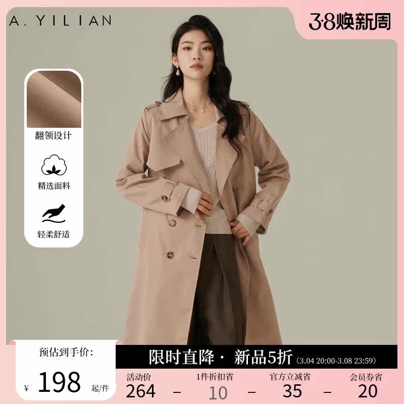 阿依莲摩登飒爽双排扣风衣女2024春季新款高级感超好看中长款外套