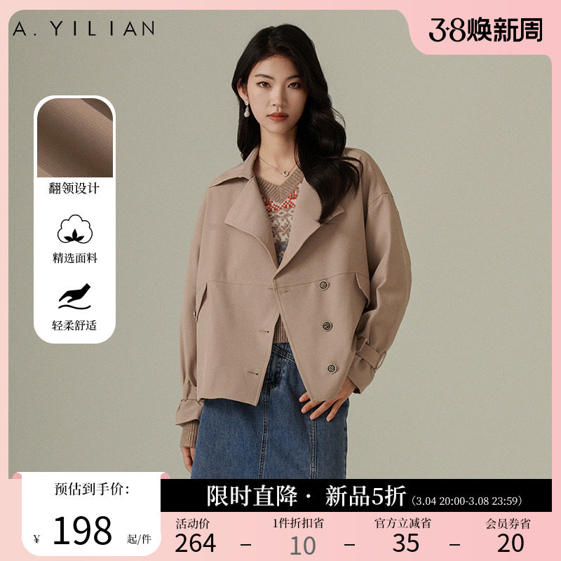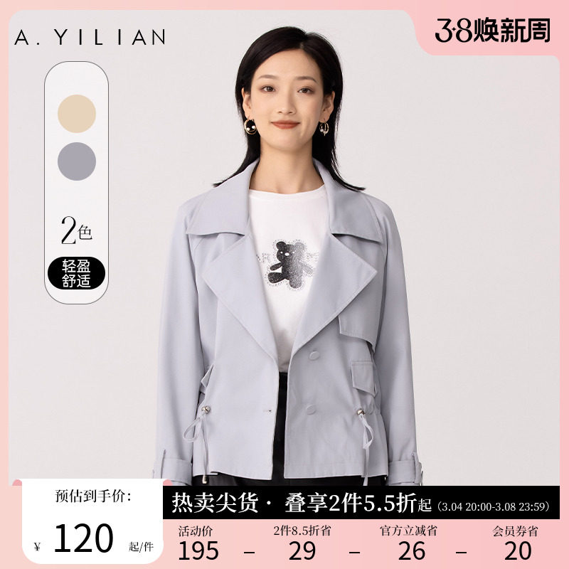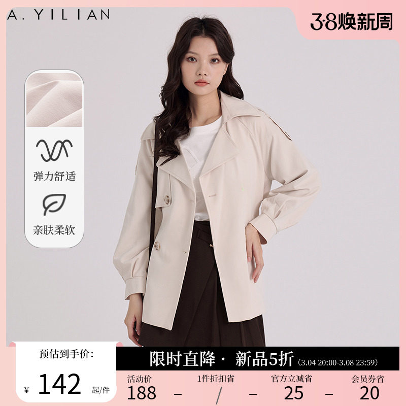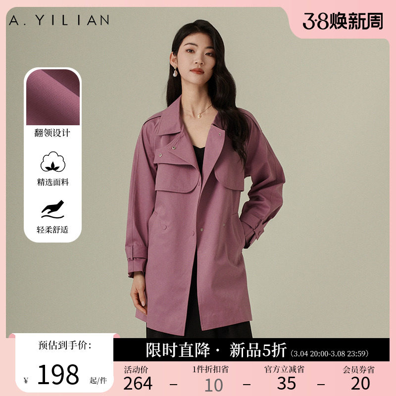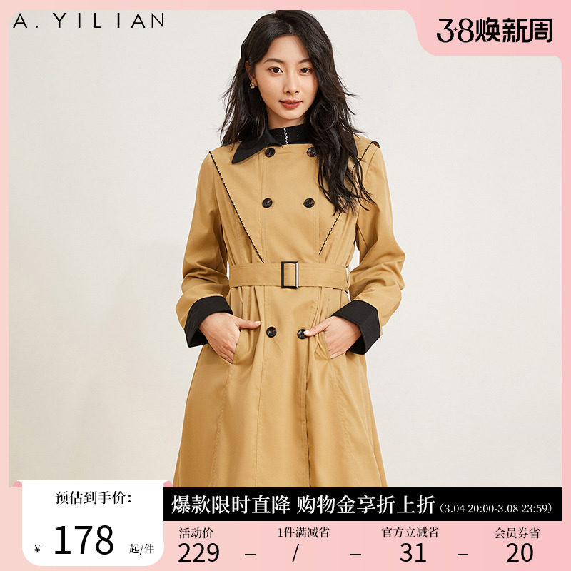 阿依莲摩登飒爽双排扣风衣女2024春季新款高级感超好看中长款外套