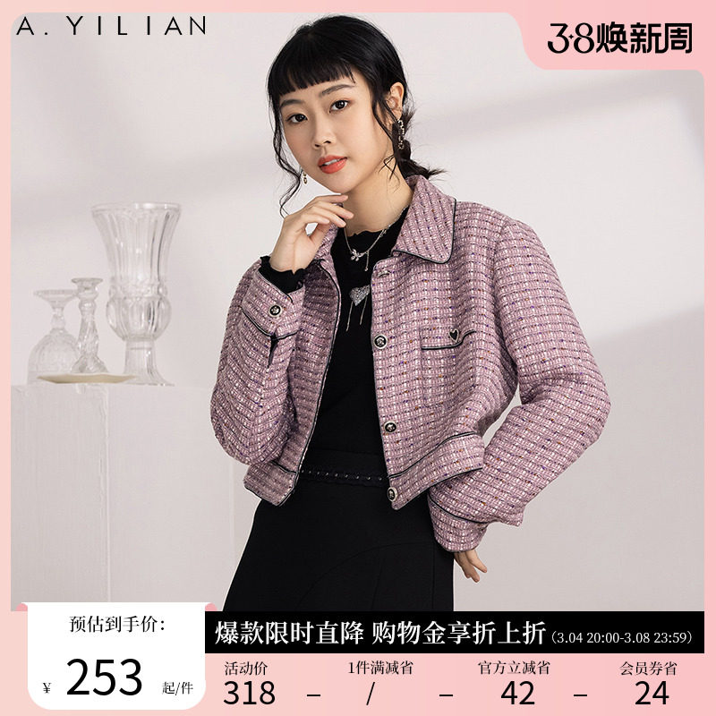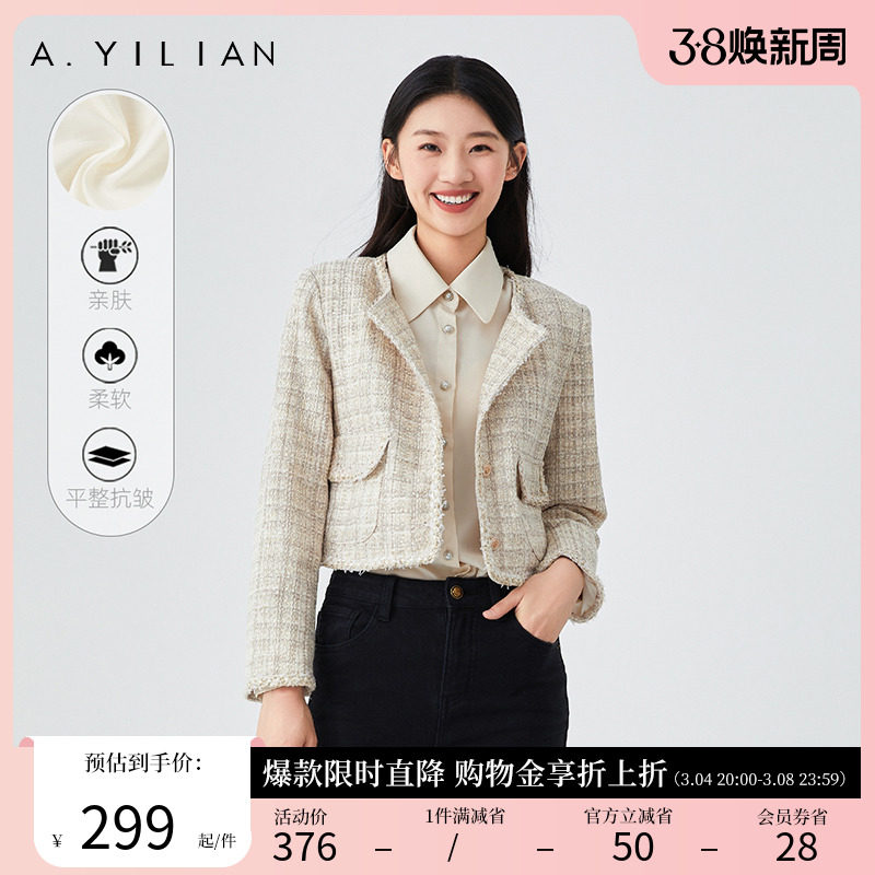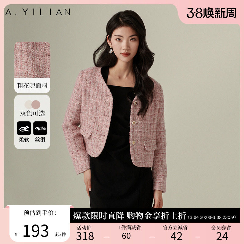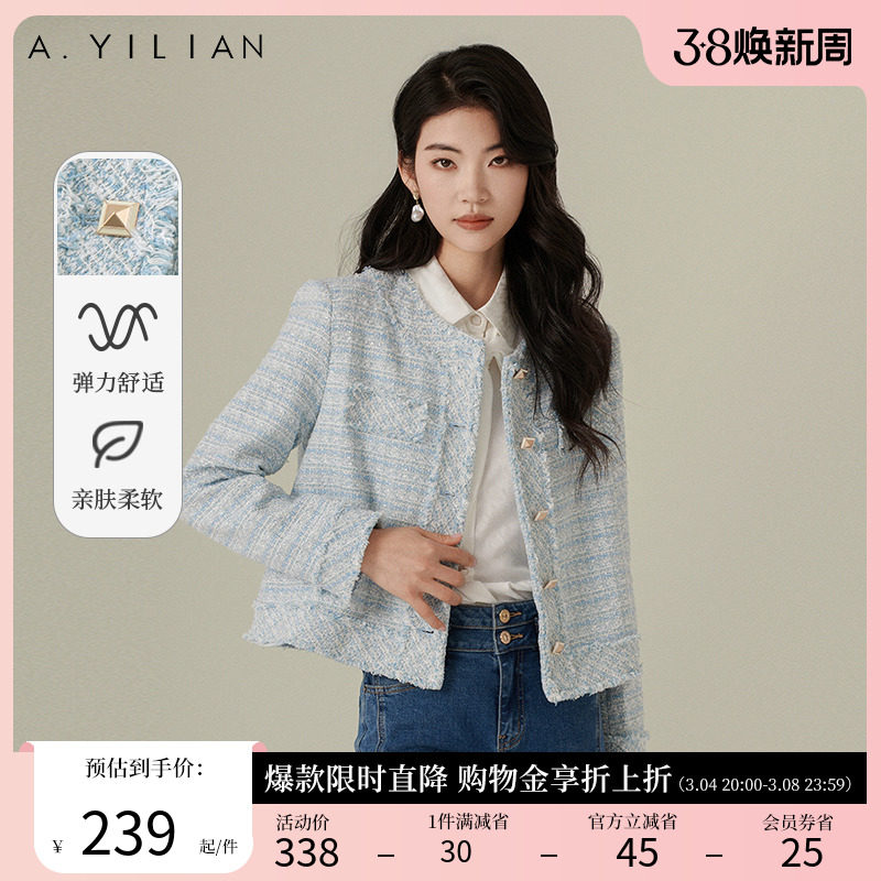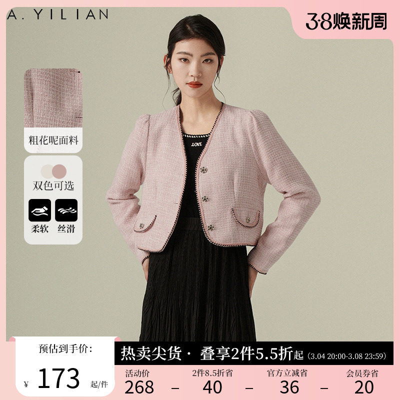 阿依莲2024新款小香风春季短外套女法式粗花呢女装上衣修身显瘦