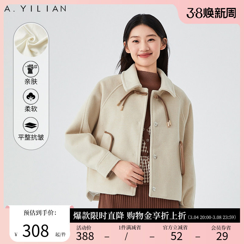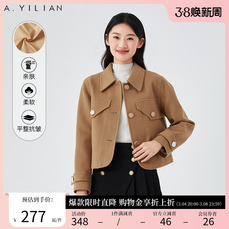 阿依莲春冬新款毛呢外套女小香风洋气复古宽松别致百搭气质短外套