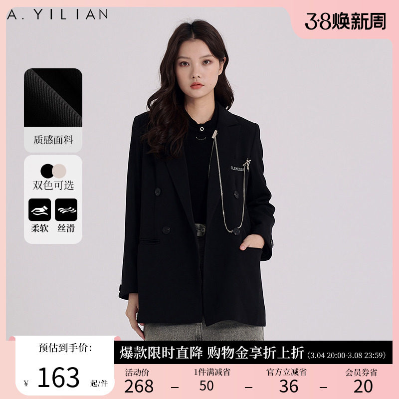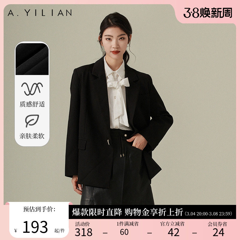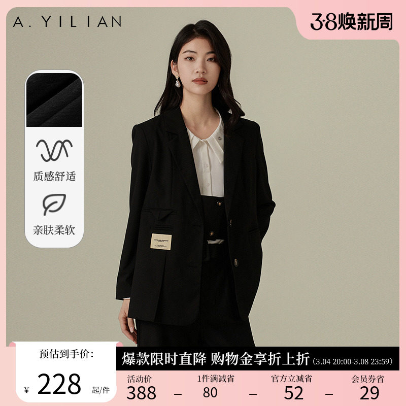阿依莲宽松休闲西装外套女2024春季新款黑色流行西服通勤简约上衣