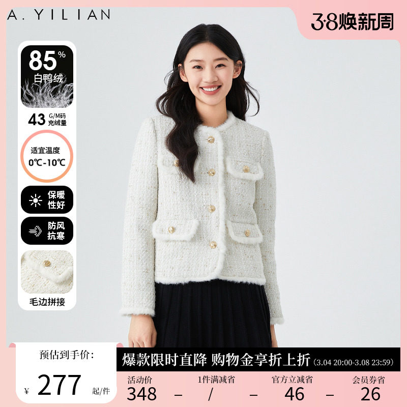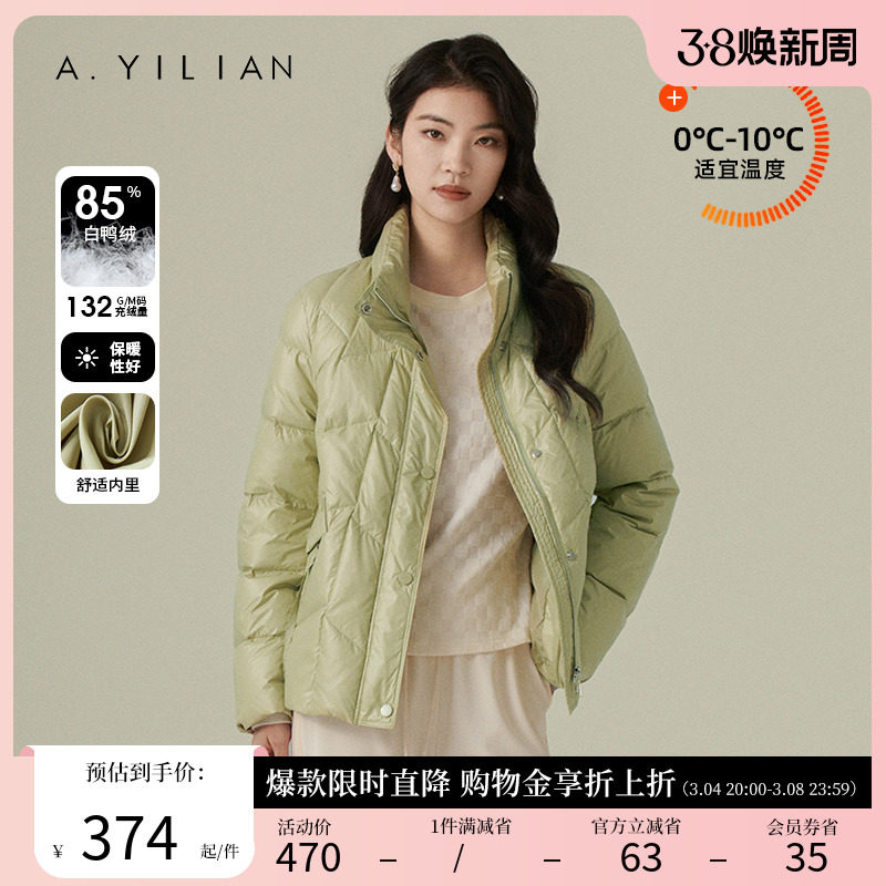 阿依莲2023新款短款羽绒服女冬小个子白鸭绒立领菱格纹保暖厚外套