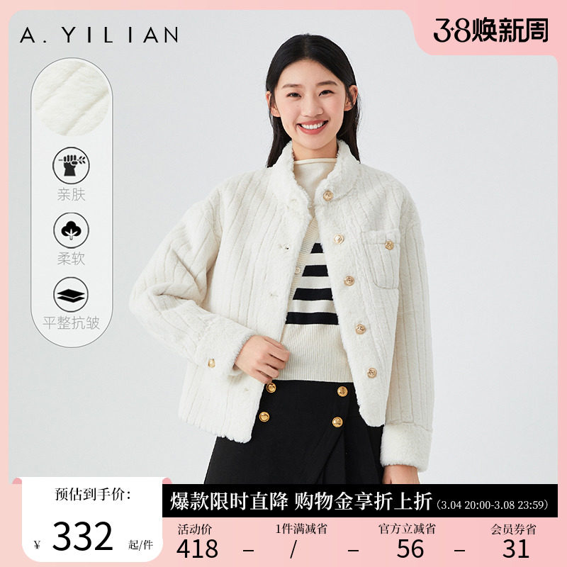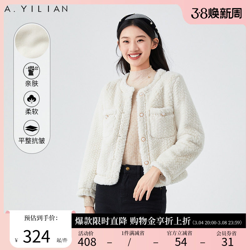 阿依莲羊羔毛短款外套2024年冬季新款亲肤修身保暖简约大气上衣女