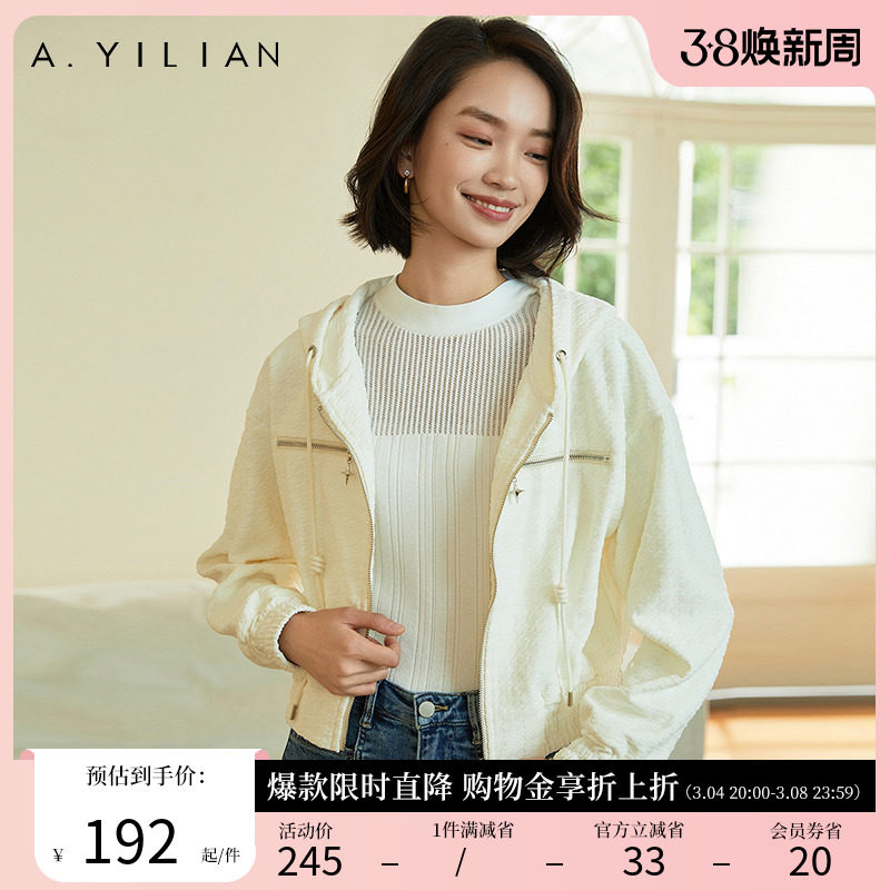 阿依莲带帽卫衣外套春季2024女装宽松休闲简约拉链开衫户外小外套