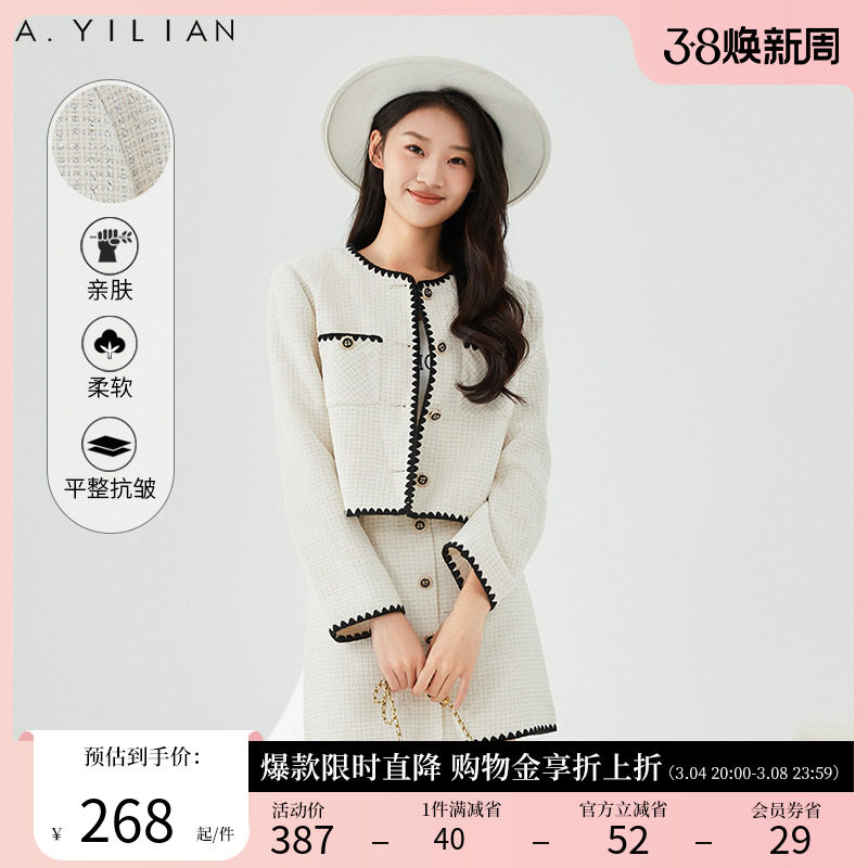 阿依莲2024新款小香风春季短外套法式粗花呢女装减龄上衣小洋装