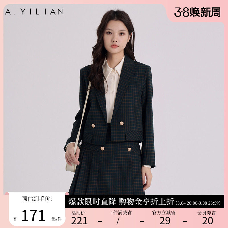 阿依莲2024春季西装外套女装时尚休闲复古通勤格纹气质小西服上衣