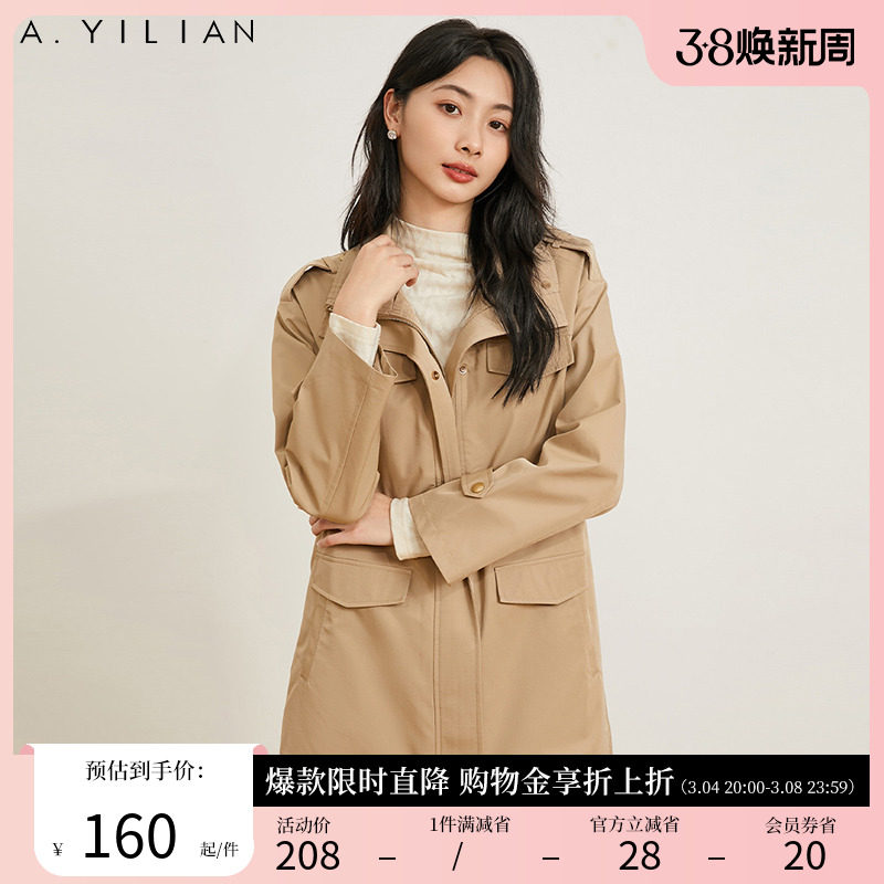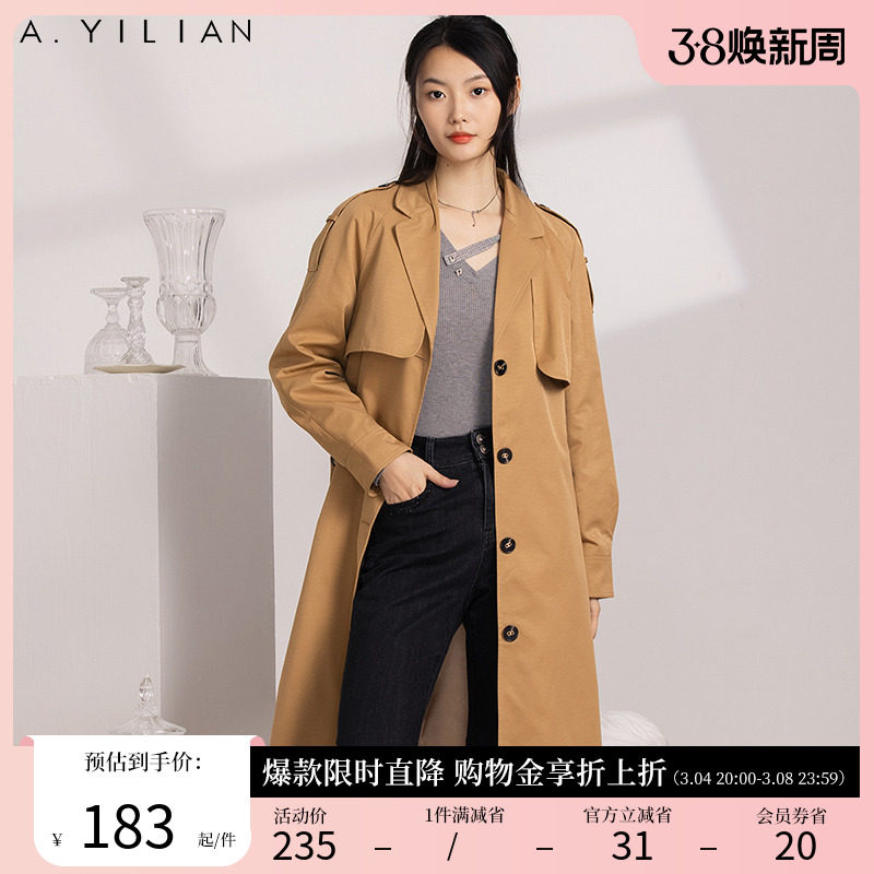 阿依莲春季新款中长款翻领英伦风时尚通勤气质大衣风衣外套女B3
