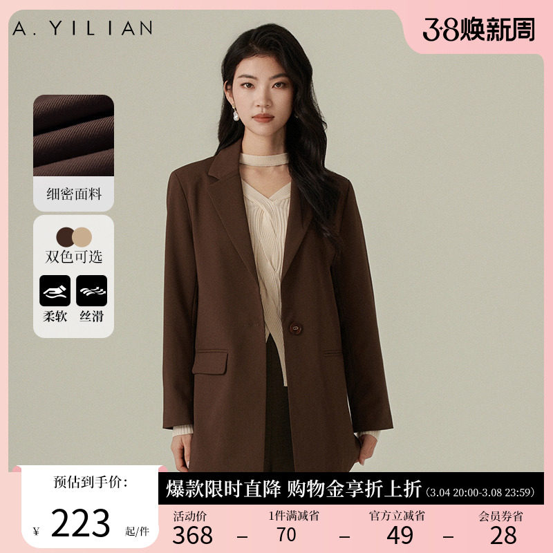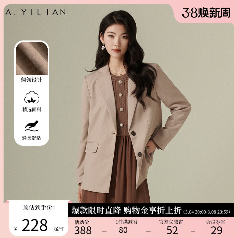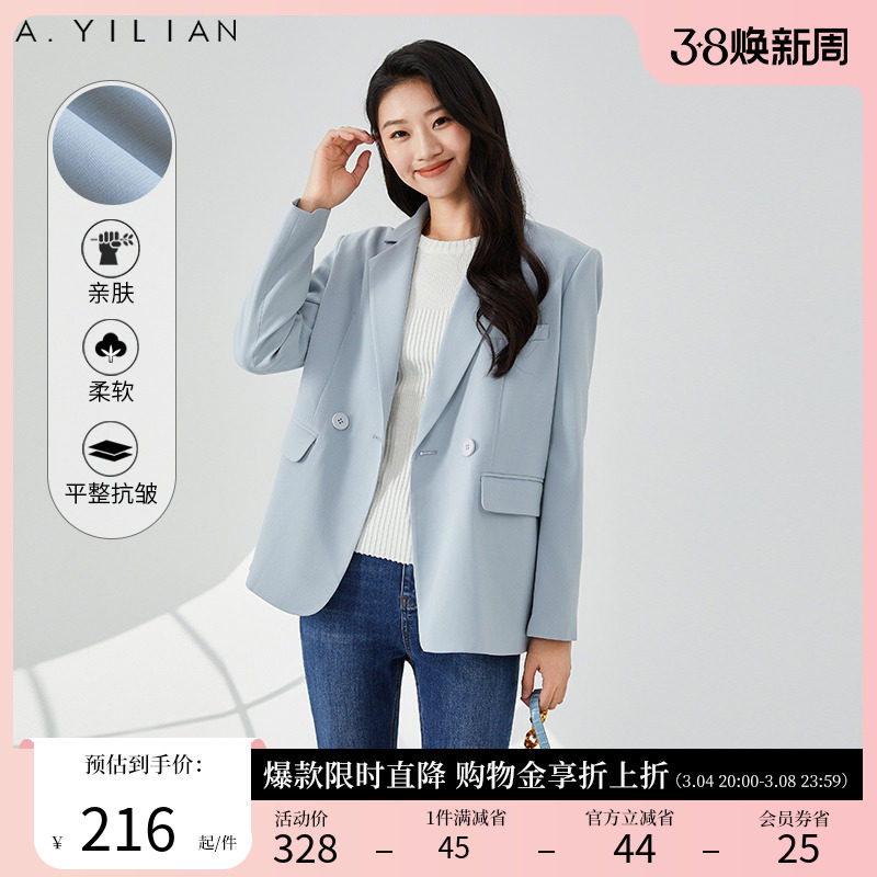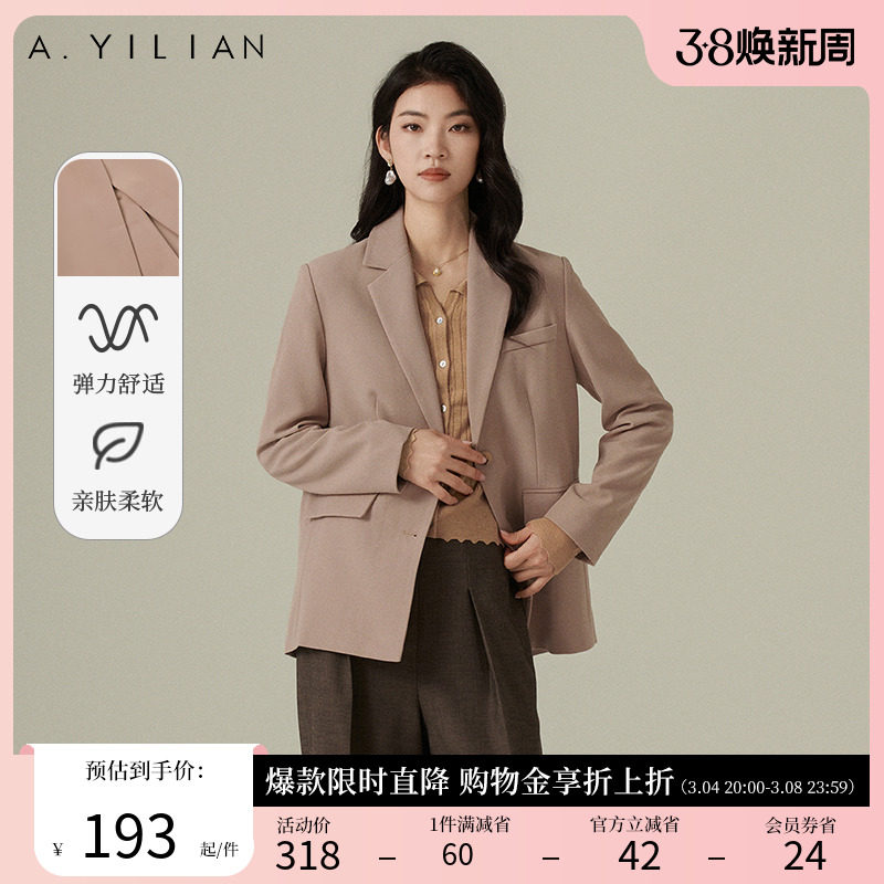 阿依莲时尚休闲西装外套女2024春季新款优雅气质纯色显瘦西服上衣