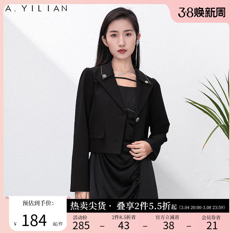 阿依莲女士西装外套春季2024新款通勤干练气质短款西服小众上衣黑