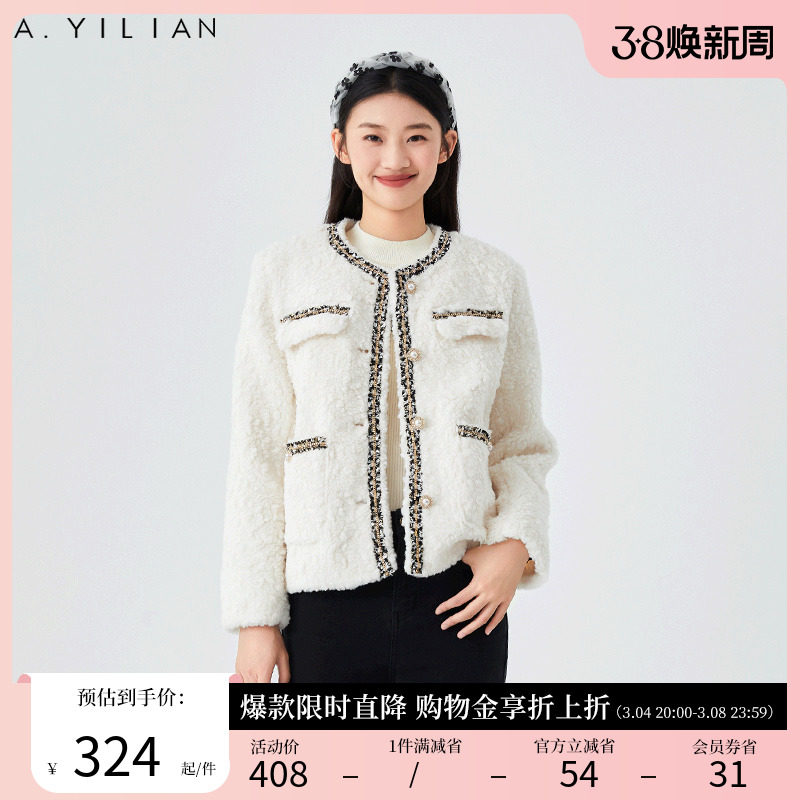 阿依莲2024新款小香风春季短外套法式皮毛一体女装外套女羊羔毛