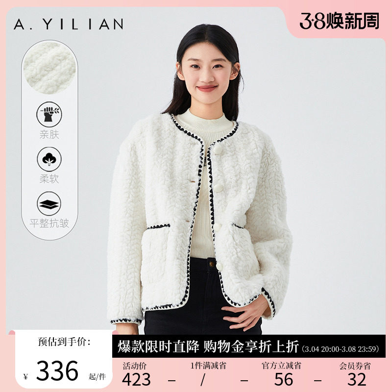 阿依莲法式圆领羊羔毛短外套春季2024新款今年流行小香风显瘦上衣