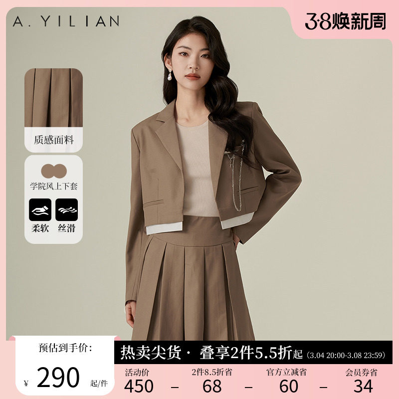 阿依莲2024新款时尚西装短外套百褶半身裙套装女士洋气两件套时髦