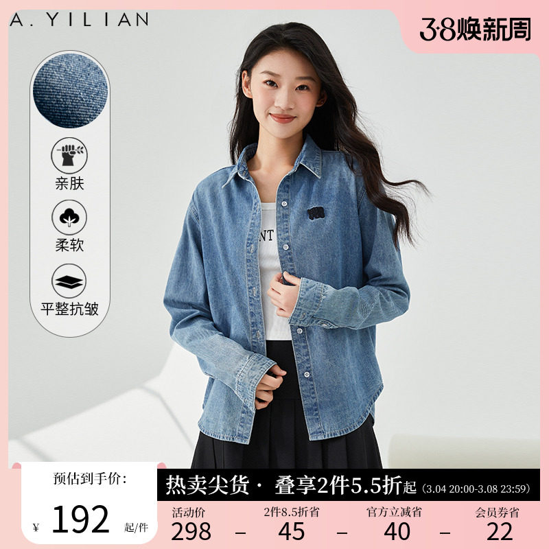 阿依莲百搭潮流牛仔衬衫春季2024新款女装时尚感穿搭减龄衬衫外套