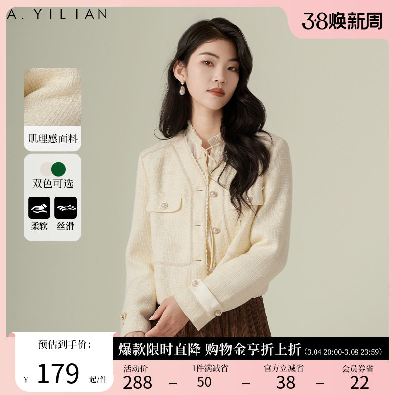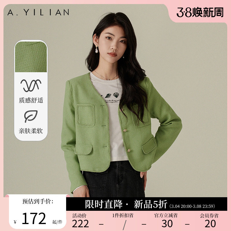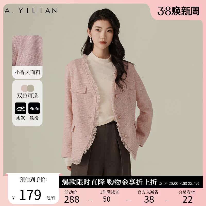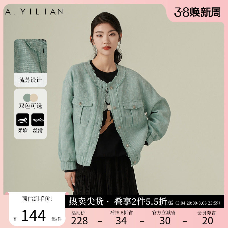阿依莲2024春季新款简约粗纺小香风外套女装宽松显瘦百搭夹克上衣