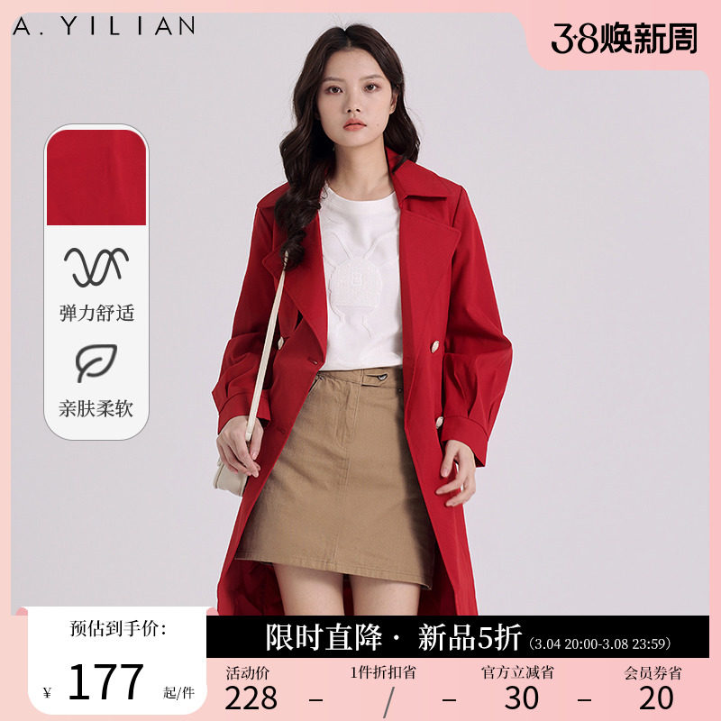 阿依莲氛围感红色双排扣风衣2024春季新款今年流行高级感气质外套