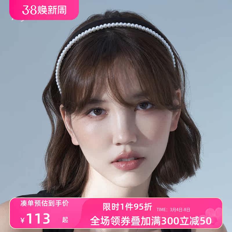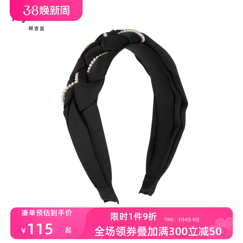 AJIDOU阿吉豆优雅气质休闲珍珠宽发箍显高颅顶发饰外出百搭头饰
