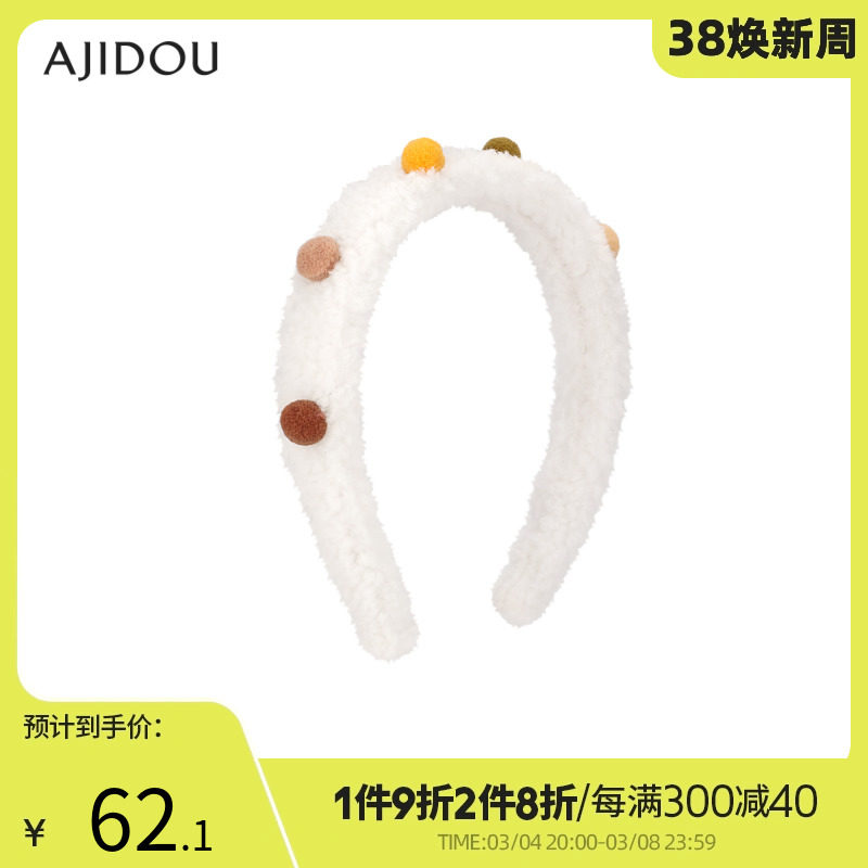 AJIDOU阿吉豆冬季治愈毛绒系列ins简约小众设计高级感可爱发箍