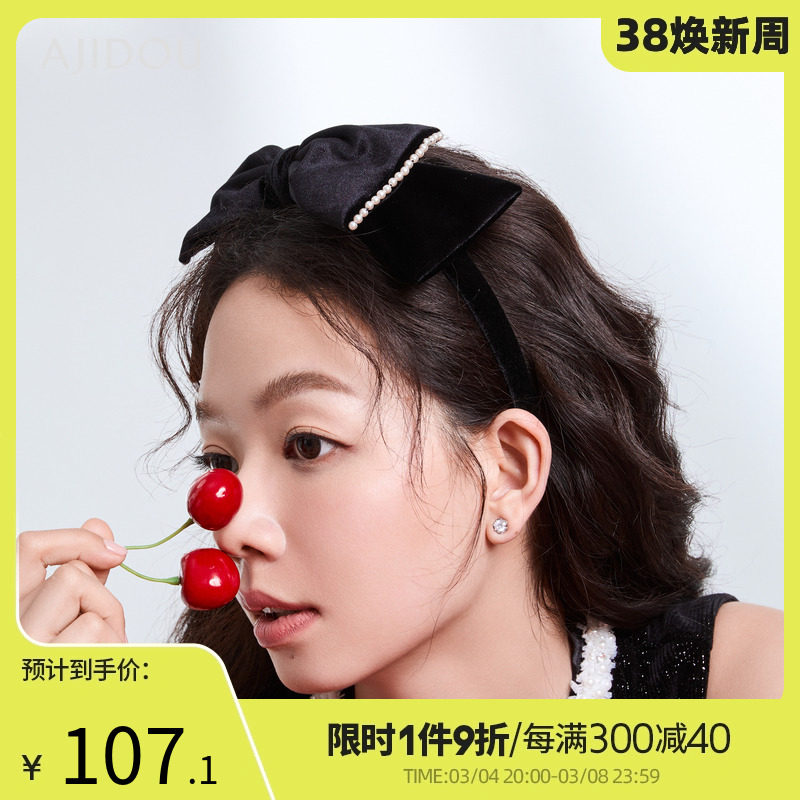 AJIDOU阿吉豆俏皮甜美珍珠蝴蝶结发箍